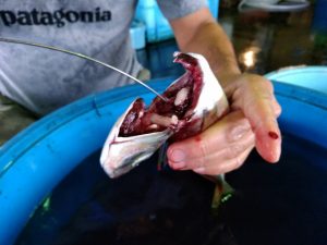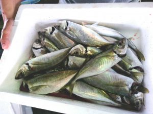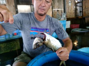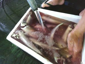 6月に解禁した舞阪漁港のタチアジ漁で揚がった活マアジを放血神経〆します。