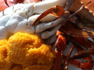 遠州灘沿岸刺し網で獲れるワタリガニ、ガザミやタイワンガザミは夏が旬!メスは内子を持つこともあります。