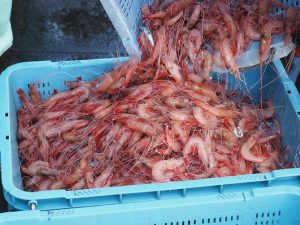 注目商品は舞阪の甘エビとも呼ばれる美しいアカスエビです。甘エビ同様に深海エビ独特の甘い脂を持っています。