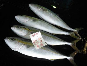舞阪漁港に揚がったイナダです。ブリ三属の長のブリに育つ若魚をイナダと呼びます。寝かせて脂が体に回ってからがオススメです。