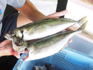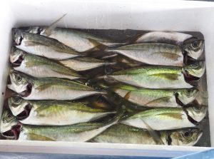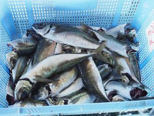 舞阪漁港の夏を代表するタチアジ漁はその名の通り活マアジを水揚げします。漁期を終えた最終日に手に入れた大きなマアジを浜〆しました。
