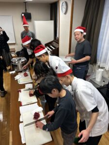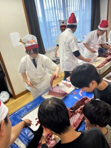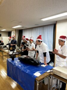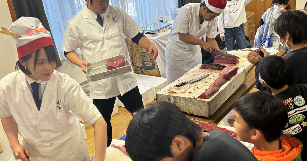 一緒にお寿司を作ったり、刺身を切ったり