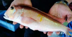 今日も皿からはみ出るサイズのアマダイを手に入れました。