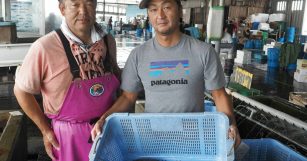 舞阪漁港の沿岸刺し網漁の名手の千葉丸の守船長の活マゴチを競り落としました。